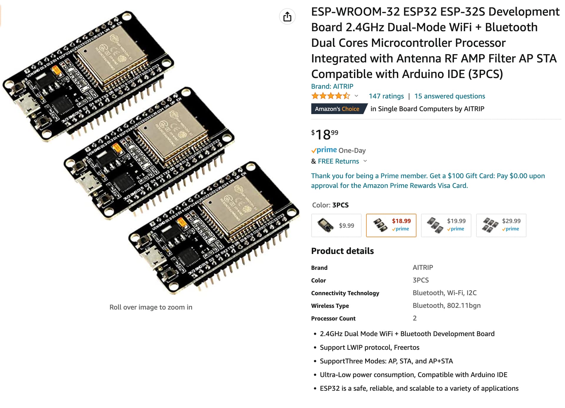 ESP-WROOM-32 ESP32 ESP-32S Development Board 2.4GHz Dual-Mode WiFi + Bluetooth Dual Cores Microcontroller The ESP32 integrated with Antenna switches, RF Balun, power amplifiers, low-noise amplifiers, filters, and management modules, and the entire...